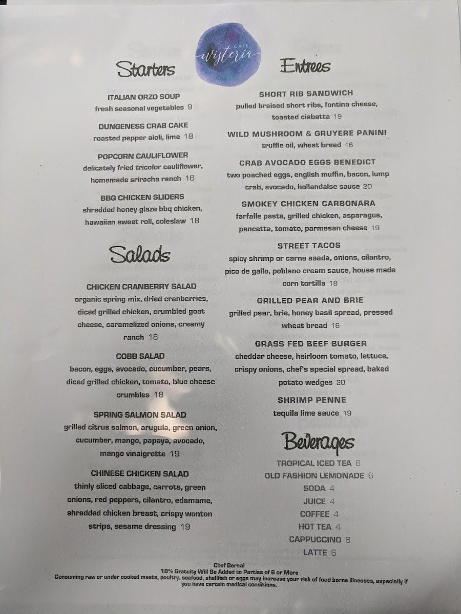 Welcome to Cafe Wisteria, a serene culinary haven nestled in the charming setting of Menlo Park, California. Located at 75 Arbor Rd, this delightful restaurant captures the essence of Californian light dining with a menu that is as vibrant as its surroundings.